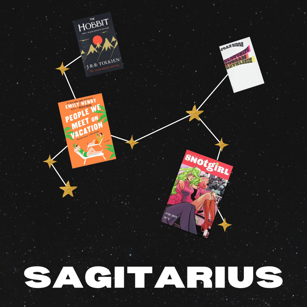 Brave, outgoing, and positive are just a few ways to describe the lucky Sagittarius. This fire sign is ruled by Jupiter—the planet of positivity and optimism. Sagittariuses often look for freedom wherever they can get it. While they are generally positive people, they can often speak bluntly. They like to take risks and go on adventures—much like Sagittarius author herself Joan Didion. Her memoir Slouching Towards Bethlehem, Didion examines the optimism of the 60s with growing cynicism and skepticism about the government. (Optimistic but taking no shit = Sagittarius to a T). Get your adventure on with Bryan Lee O’Malley’s comic series Snotgirl, a series about a gorgeous and fun-loving influencer who just so happens to have horrible allergies.