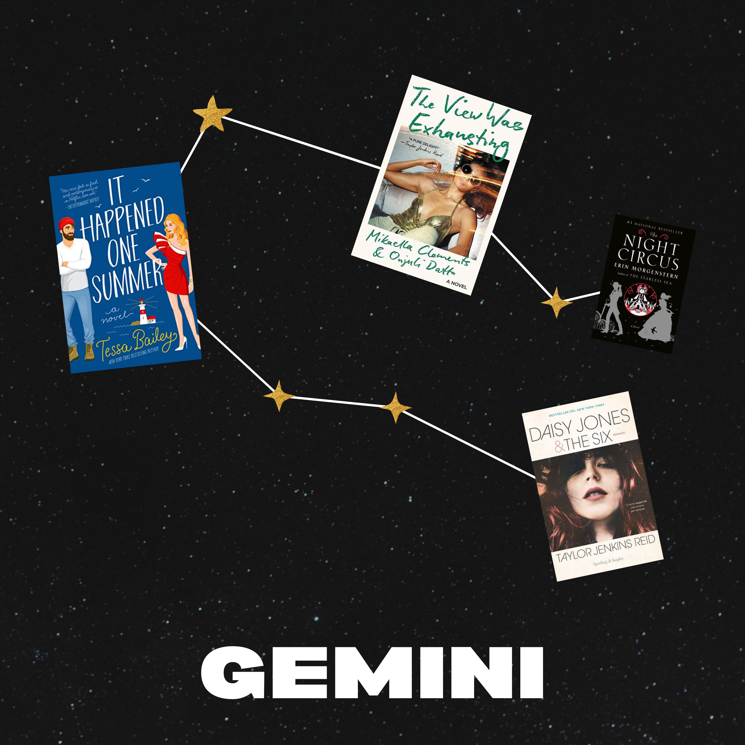 These lovable air signs are known to be playful, social, and curious. As passionate, impulsive, and indecisive individuals, they tend to juggle loads of hobbies and passions. They aren’t big on sticking to a routine and may struggle to follow a single career path. Geminis love fresh and exciting experiences, and absorb information quicker than the average bear. They’re ruled by Mercury, the planet of communication, and it shows. Geminis tend to be extroverted and love to switch up with their social settings. Being able to relate and keep up with a variety of people, you’ll find them meshing well with multiple friend groups. This sign won’t be able to put down reads full of outgoing characters like those found in Daisy Jones and the Six and It Happened One Summer.