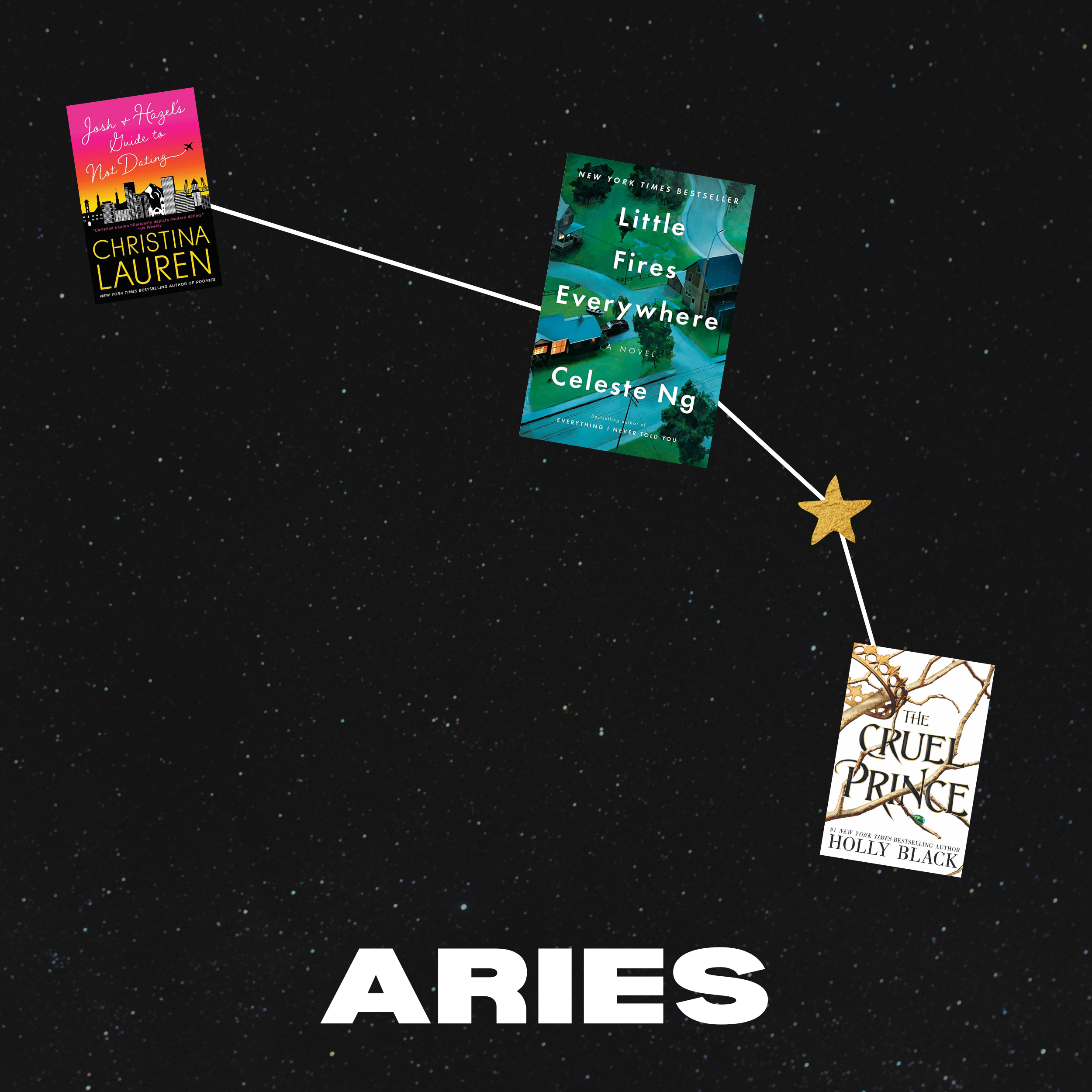 The first of the zodiac, Aries are natural leaders full of passion and fire. Like, literally fire. And we’re not just talking that their element is fire—Aries is ruled by the planet Mars. Named after the Roman god of war, Mars’s influences make for aggression, anger, passion, and courage. So with all that heat (and impulsiveness), we recommend books with the energy and protagonists of leaders with a fire to light. From the chaotic lead Hazel from Josh & Hazel’s Guide to Not Dating who doesn’t apologize for who she is to the burn-it-to-the-ground attitude that slowly festers in the nuances of Little Fires Everywhere, these reads are just as hot as Aries are.