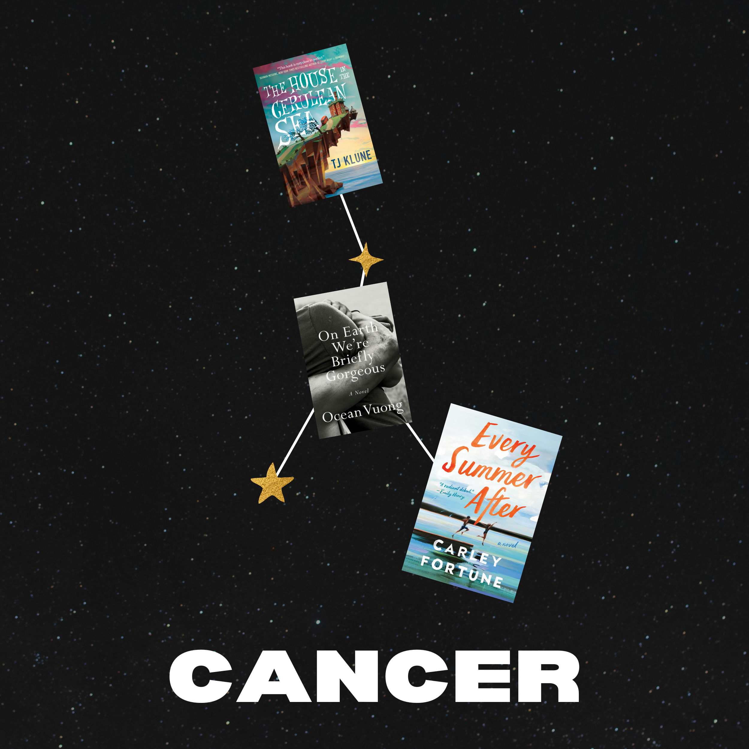 Ruled by the moon, Cancers are known to be quite emotional—while you may consider them cry babies, they’re much more than that. Cancers are incredibly emotionally intelligent, nurturing, and empathetic. Their element is water, which is considered the feminine or yin energy of emotion. This gives Cancers the ability to feel emotions at a deeper level, allowing them to connect with others’ emotions very well. Books like The House in the Cerulean Sea by T.J. Klune offer Cancers exactly what they need to connect: unconditional love, raw emotions, and a little bit of magic. Not a fan of fantasy? Poet and writer Ocean Vuong writes a beautiful prose in On Earth We’re Briefly Gorgeous, sharing an earth-shattering letter from son to mother.
