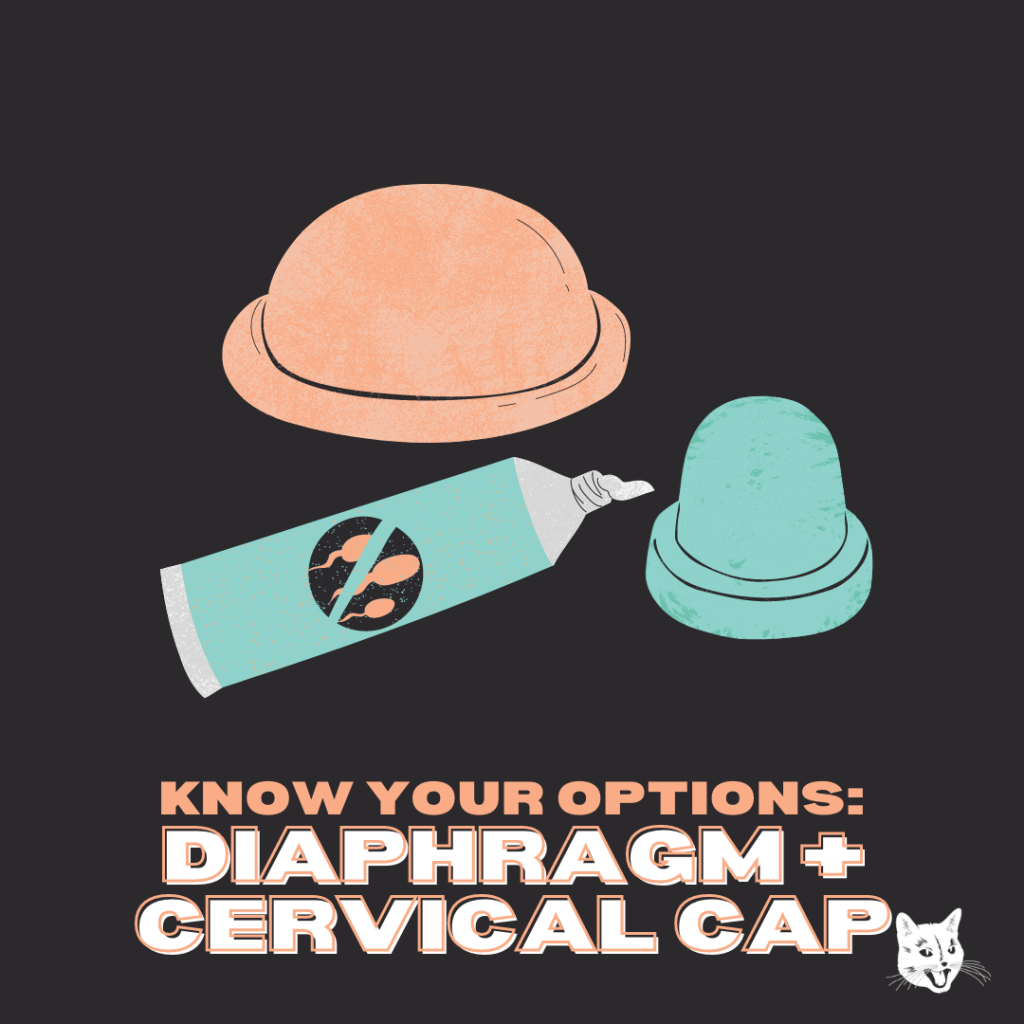 The two are fairly similar, but how do they work? Both the diaphragm and cervical cap are placed inside the vagina, up against the cervix. (Think of a menstrual cup or disk). While the two cover the opening—preventing sperm to meet an egg—both are best used with spermicide.