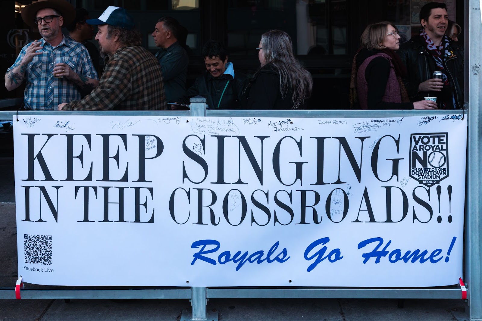 Musical performances included Bob Walkenhorst, Gerald Trimble & Jambaroque, Cody Wyoming Deal, Havilah w/ Rich Hill, Starhaven Rounders, The Musical, Steddy P, The Uncouth, Kadesh Flow, and Freight Train Rabbit Killer. The night included a “living breathing folk song” that allowed everyone involved to get on stage and sing different verses about why the stadium should remain at the Truman Sports Complex. The lyrics included “Hey big money leave my city alone” and a verse of “Progress comes and progress goes / everything changes with the ebb and flow / all we want is to keep our home down in the old crossroads.”
